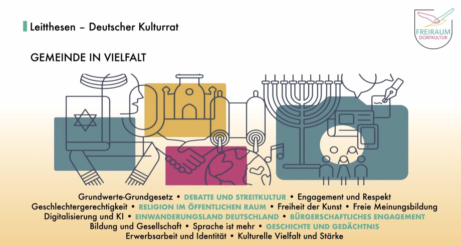 Für die Steuerung unserer Beteiligungsarbeit beziehen wir uns auf die 15 Leitthesen des Deutschen Kulturrats zur Kulturellen Identität. Hieraus haben wir uns 5 für dieses Projekt wichtige Ansätze herausgesucht, die einen Orientierungsrahmen für die Prozessentwicklung sichern. Es sind im Einzelnen: