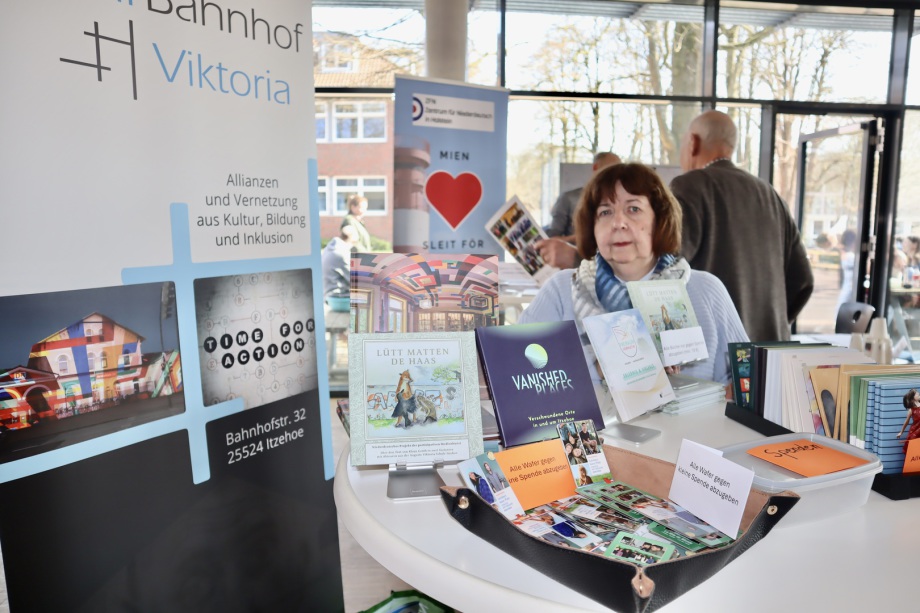 In Itzehoe ist die Auguste Viktoria Schule (AVS) eine der ersten Modelleinrichtung für Niederdeutsch in Schleswig-Holstein. Auf der Niederdeutsch-Messe am 19. März 2026 stellten sich u.a. weitere Modellschulen aus den Kreisen Stormarn, Herzogtum-Lauenburg, Neumünster, Lübeck und Plön im Landesteil Holstein vor, gaben Einblicke in ihre Arbeit – und auch der KulturBahnhof Viktoria Itzehoe war dabei. Seit vielen Jahren bereits gehört unser Medienzentrum als außerschulischer Lern- und Erlebnisort zur großen Familie der niederdeutschen Sprache in unserem Land. Hier wird platt geschnackt, Texte werden in unseren Studio eingesprochen, Hörspiele entwickelt, Podcasts produziert mit den Schüler*innen, Fortbildungen angeboten, virtuelle Erlebnisräume vor dem Greenscreen modelliert. Am 19. März waren die maßgeblichen Austeller*innen zu Gast in der AVS Itzehoe. Dabei u.a. das Ohnsorg-Theater aus Hamburg, die Plattdüütsch-Stiftung Slewig-Holsteen, der Heimatbund Steinburg und der Quickborn Verlag – die Gelegenheit, miteinander ins Gespräch zu kommen, an Büchertischen zu stöbern und Materialien zu erwerben, Ideen für niederdeutsche Unterrichtsphasen mitzunehmen, an kurzen Mitmach-Aktionen teilzunehmen und sich über den Weg zur Modellschule Niederdeutsch zu informieren.